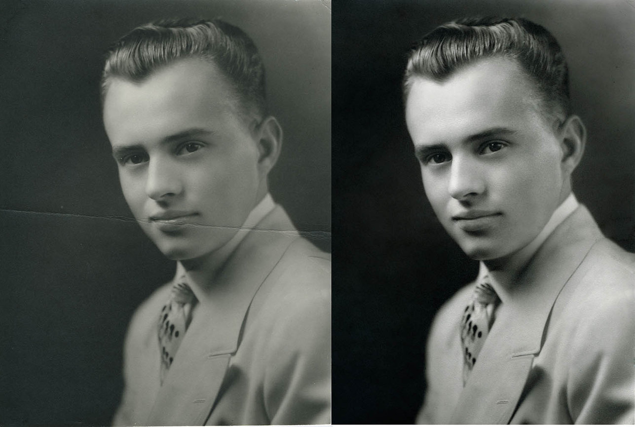 Hope is not lost! Your photos can be repaired! Water damaged, faded, ripped and faded prints can be improved and a new digital file can be sent to you within 5 business days.